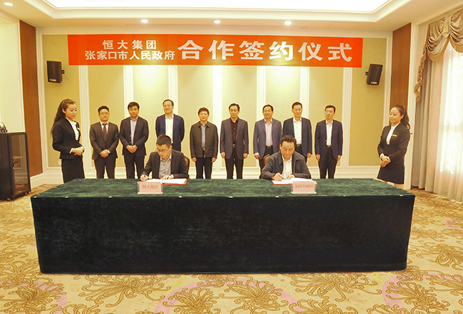 当天,集团董事局主席许家印率副总裁柯鹏、副总裁时守明、北京公司董事长许晓军等高管,张家口市委书记邢国辉,市长侯亮,市委常委、常务副市长武卫东,市委常委、秘书长王江,市政府秘书长张锐以及市发改委、市农牧局等部门主要领导参加了会谈和签约仪式。集团副总裁柯鹏、张家口市长侯亮代表双方签署了太阳能光伏发电重大项目战略合作协议。