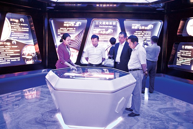 考察期间,在集团董事局副主席、总裁夏海钧博士的陪同下,梁稳根一行参观了世界顶级、中国第一的恒大集团展示中心。据悉,恒大展示中心是由美国航天馆、通用汽车馆、上海世博会美国馆、可口可乐馆的设计公司和好莱坞顶级团队共同打造,是代表全球最高规格、最高水平及最高科技的企业展馆。梁稳根一行在参观了“恒大在中国”和“精品之旅”等展区之后,对展厅的精彩内容及展示技术印象深刻,并当场表示了高度的赞许。