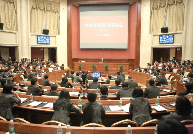4月25日,北大光华管理学院名誉院长、著名经济学家厉以宁教授应邀做客恒大集团,并作了题为《当前经济形势》的专题讲座。恒大集团董事局副主席、总裁夏海钧等集团总部高层领导,以及集团各级管理层干部约三千余人共同听取了这位经济学泰斗的演讲。